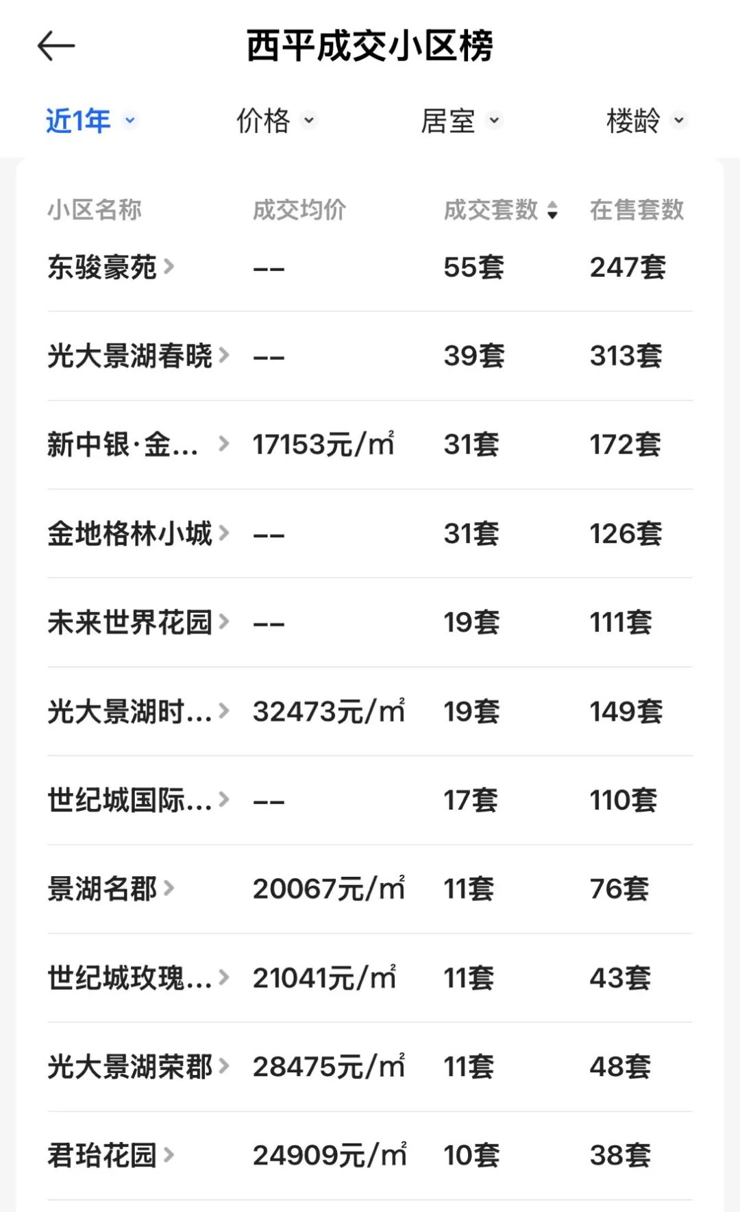 西平片区成交抢手的小区,